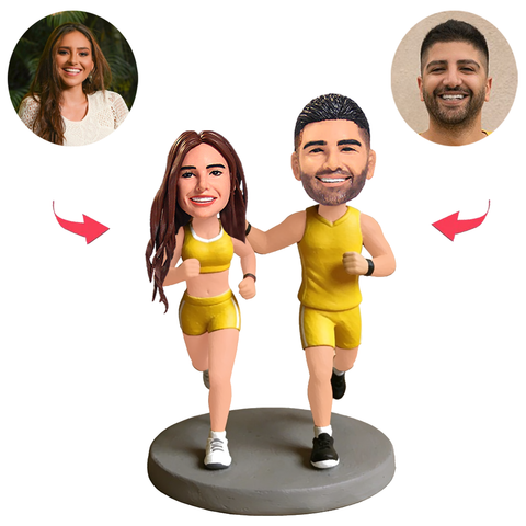 Couple in Yellow Tracksuits Running Custom Bobbleheads