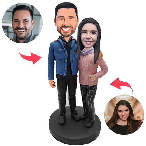 Couple Outdoors in Winter Custom Bobblehead