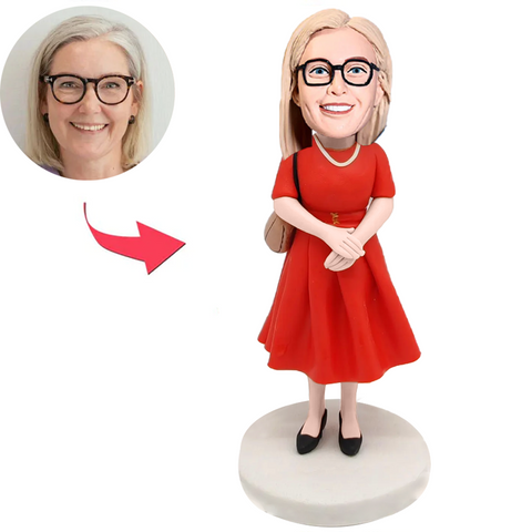 Female Wearing Red Dress and Carrying Bag Custom Bobbleheads