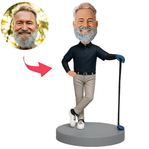 Golfer in Blue Short-Sleeved Shirt Custom Bobbleheads