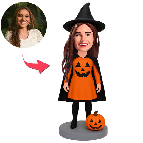 Halloween Lady Wearing Pumpkin Costume Custom Bobbleheads