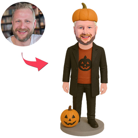 Halloween Man Wearing Pumpkin Hat Custom Bobbleheads