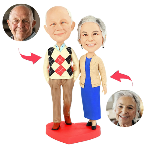 Happy Elderly Couple in Sweaters Custom Bobbleheads
