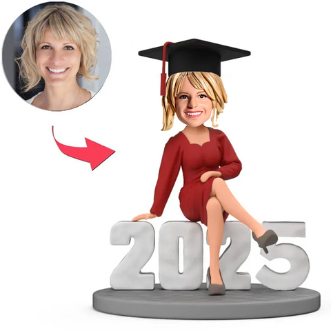 Happy Graduation Woman Sit on 2025 Custom Bobbleheads