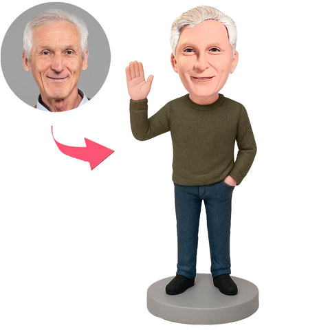 Man Raising Hand to Say Hello Custom Bobbleheads