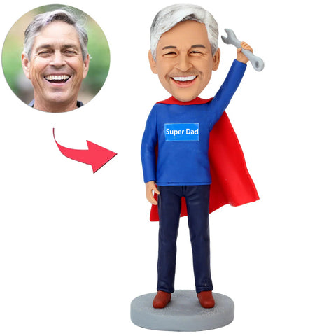 Super Dad with Cape Holding Wrench Custom Bobbleheads