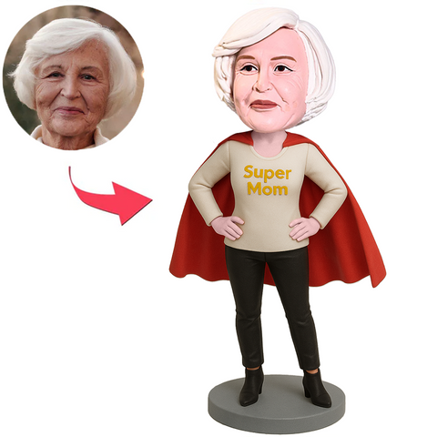 Super Mom in Beige Clothes with Cape Custom Bobbleheads