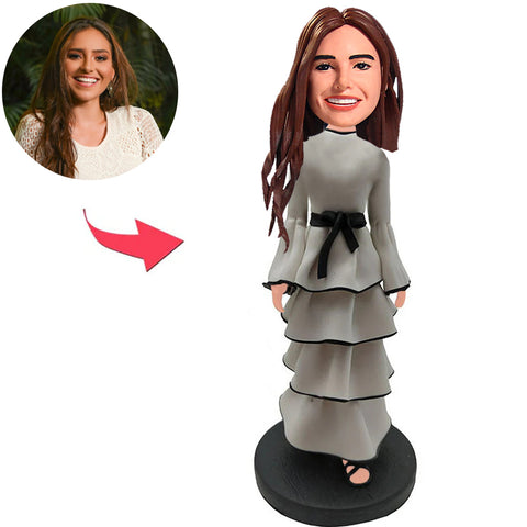 White Dress Fashion Modern Girl Custom Bobbleheads