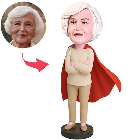 Woman in Beige Suit and Cape Custom Bobbleheads