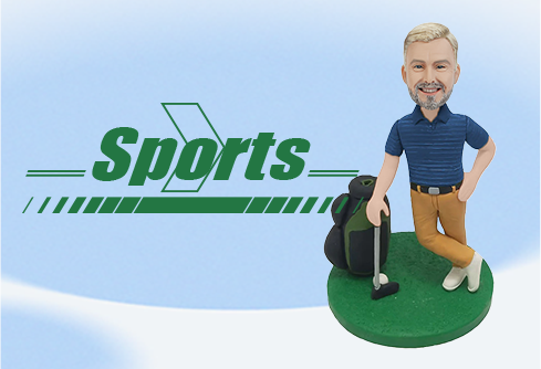 Golfer in Blue Short-Sleeved Shirt Custom Bobbleheads